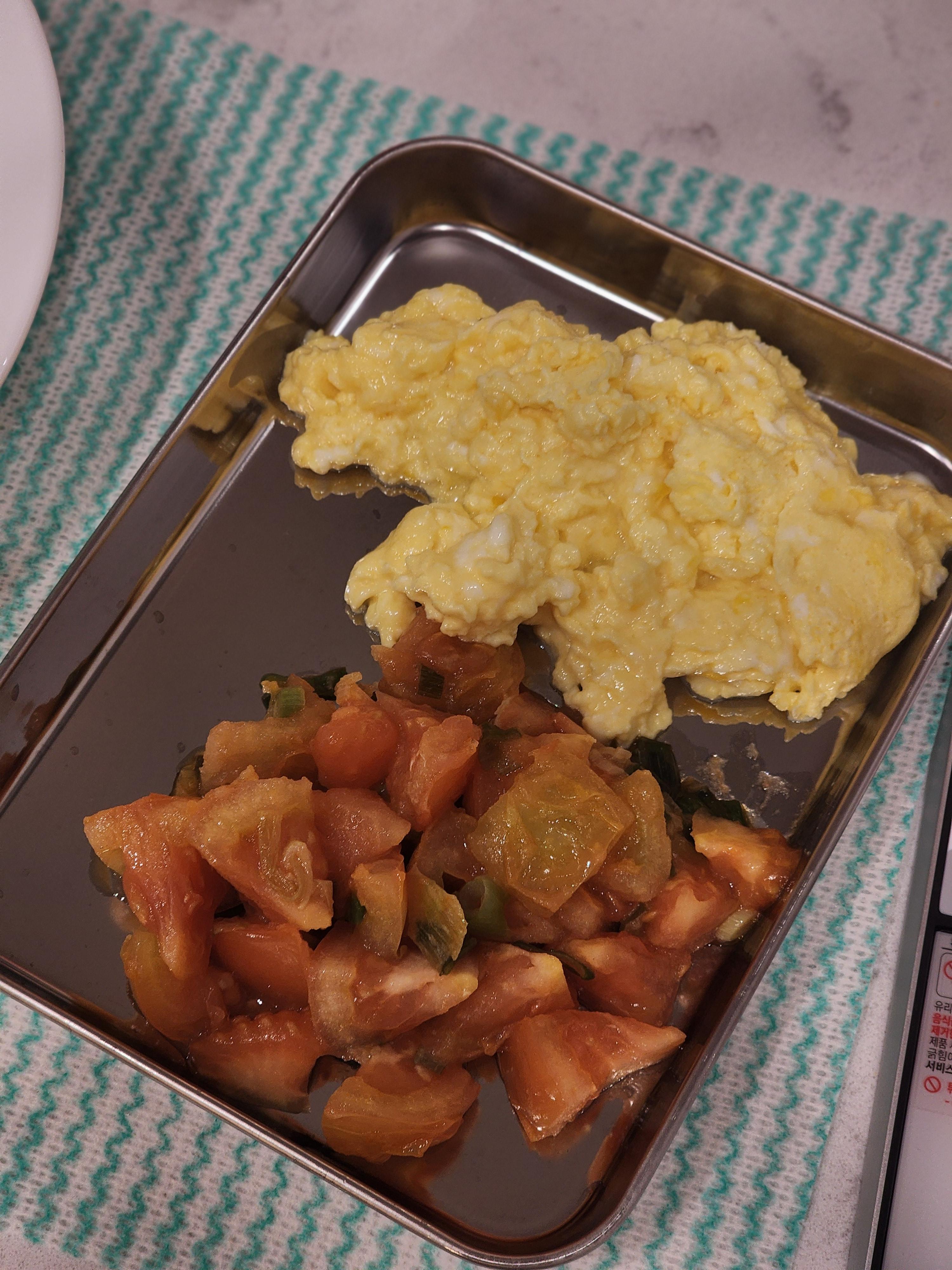 스크램블도 볶은 토마토 옆에 덜어두겠습니다.