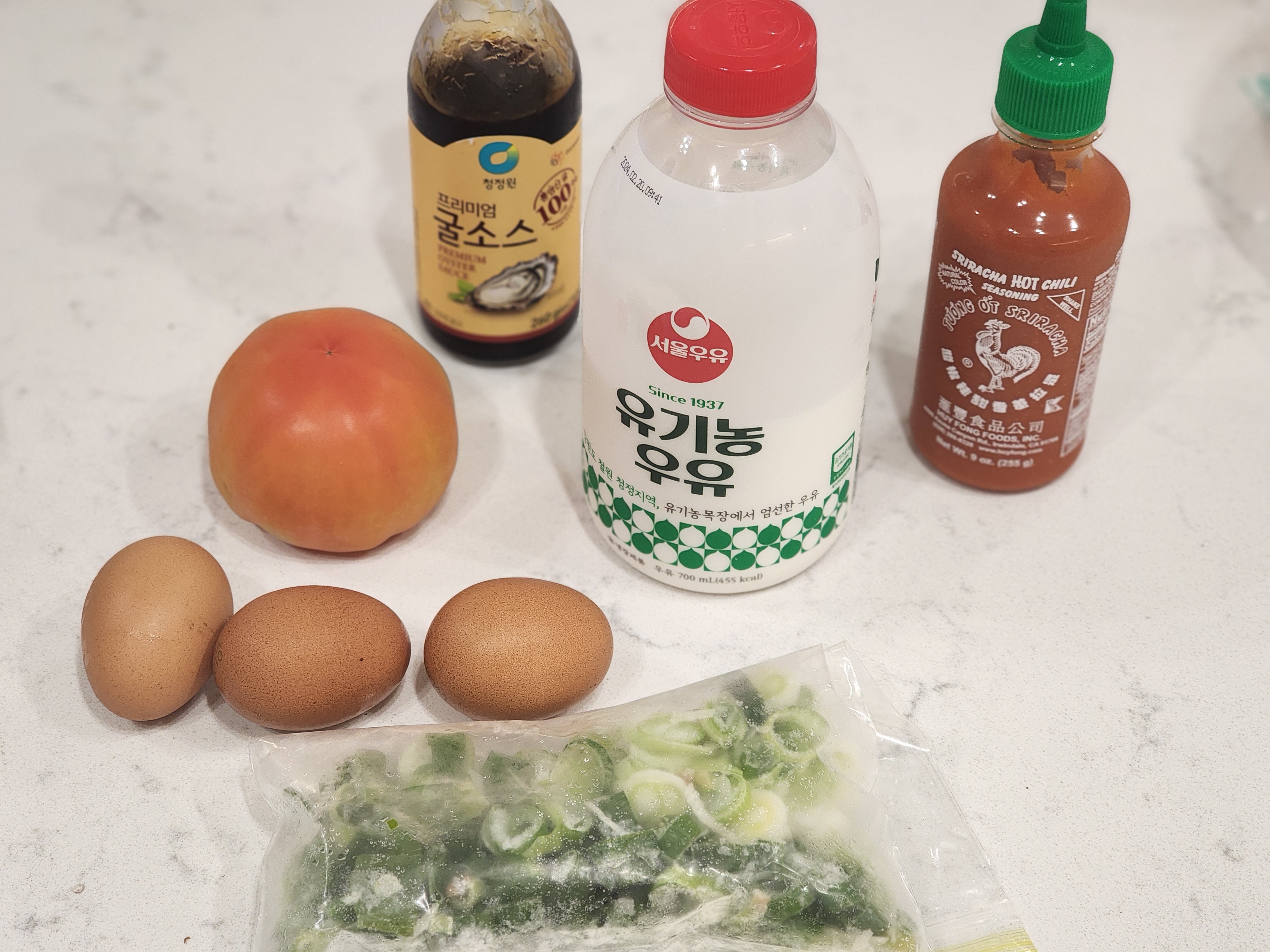 - 토마토 1개 (아삭한 완숙 토마토입니다. 기름에 넣고 볶을거라 비싼 토마토는 아까워요)