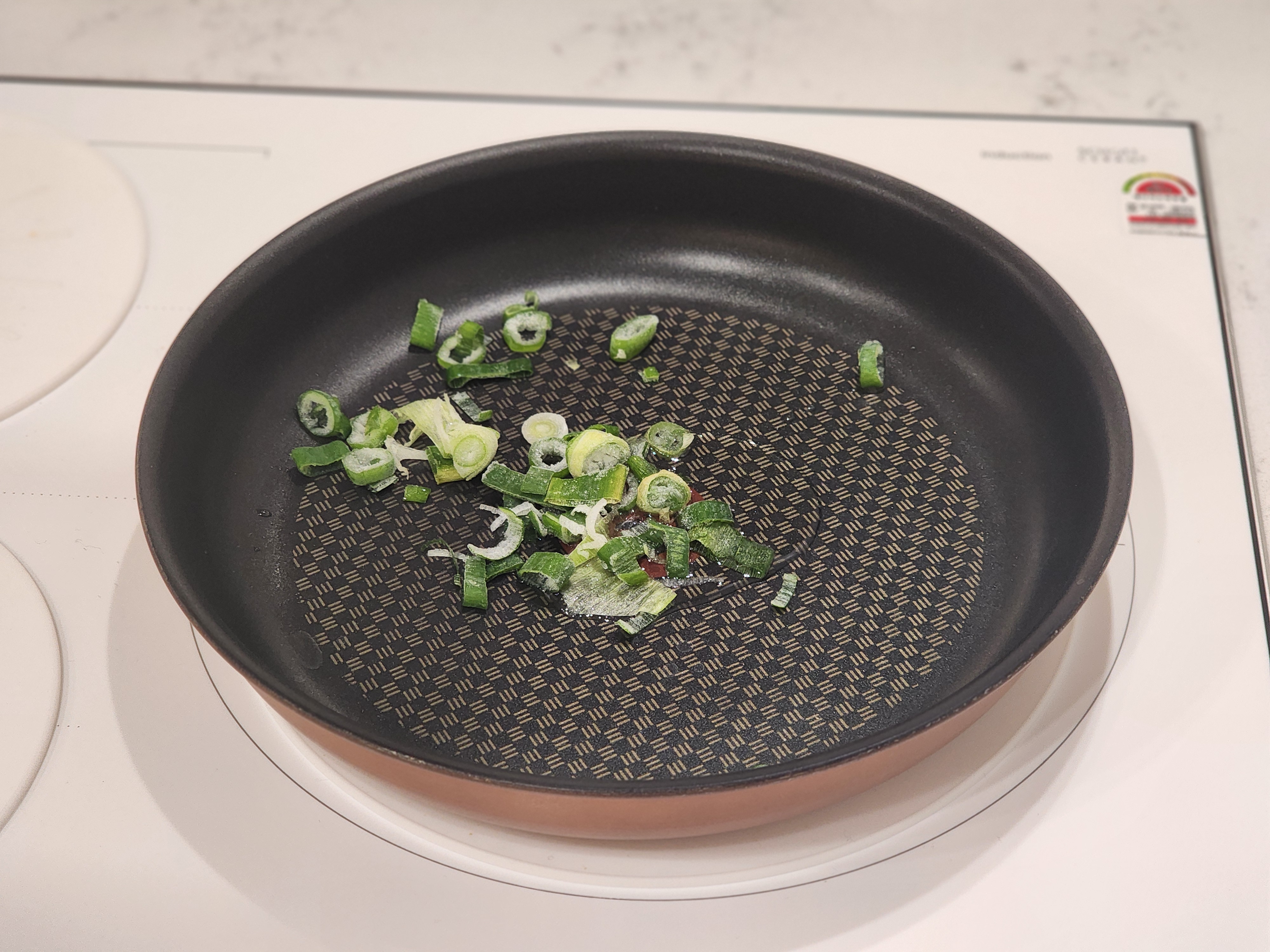 1) 팬에 기름을 두르고 대파를 넣어 파기름을 만들어주겠습니다. (대파 대신 마늘, 쪽파 무엇이든 무방 ! 개취 !)
