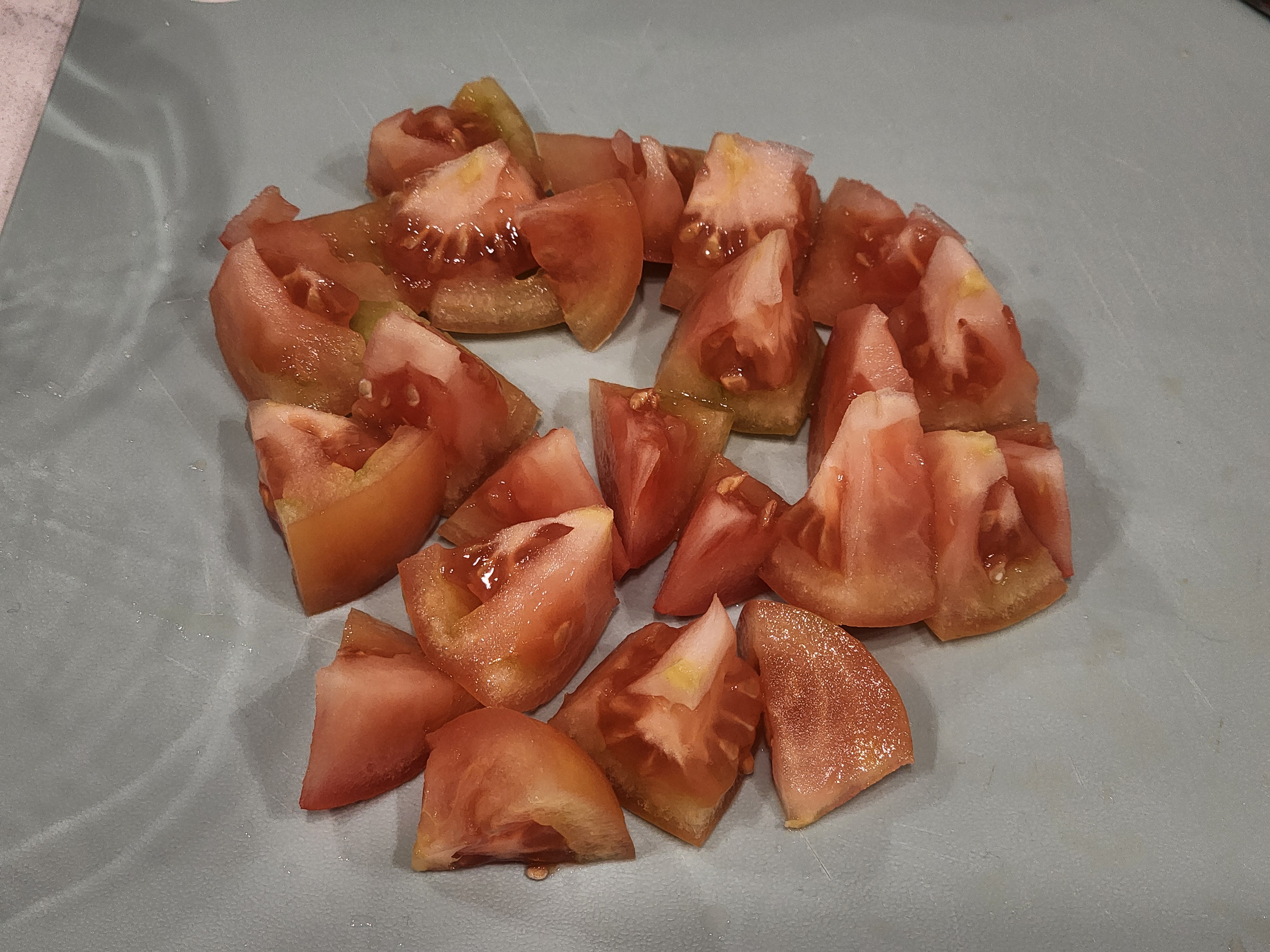 *저는 토마토 씹는 맛을 좋아하지 않아서 잘게 써는 편인데, 식감을 좋아하시는 분은 더 굵게 썰어도 무방합니다.