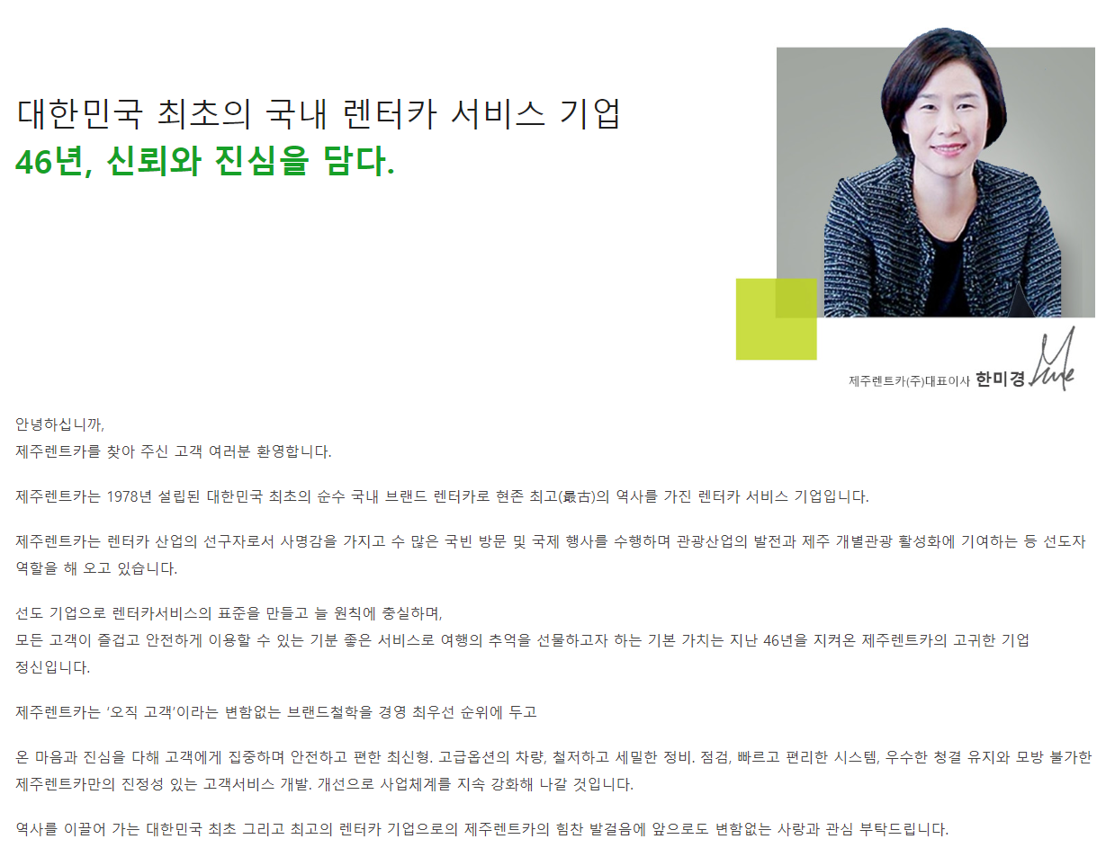 1. 대한민국 최초의 가장 오래된 렌터카 회사 - 제주렌트카