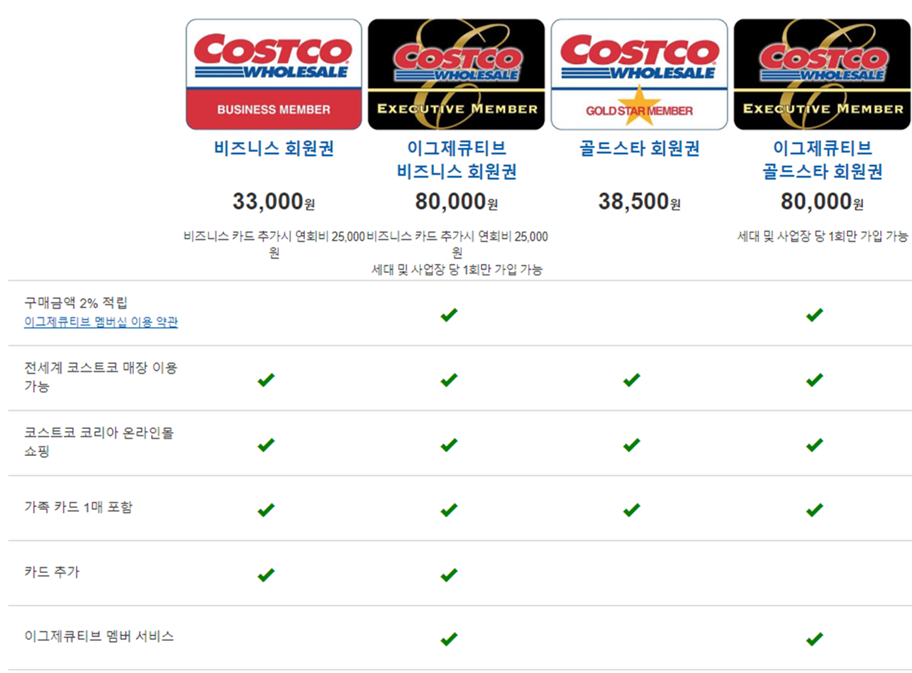 코스트코는 크게 두가지 종류로 회원권을 나누고 있는데요.