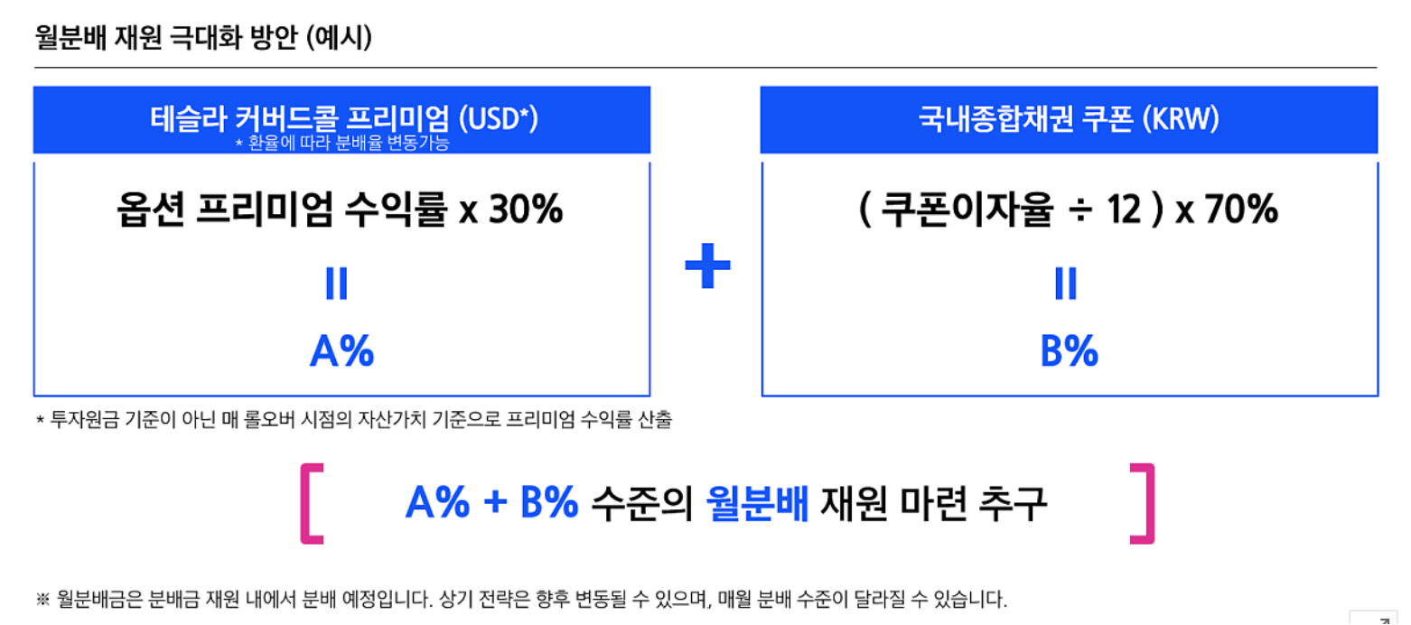 1) 연금투자용 한국형 TSLY (테슬라 커버드콜 30% + 채권 70%)
