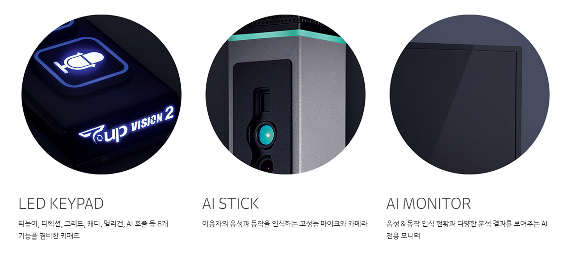 두번째로는 전용 키트를 활용한 AI 서비스를 제공한다는 것입니다. 아마 T2 모델이 있는 프렌즈 스크린장을 가보신 분들은 이미 보셨겠지만 아래 이미지와 같이 LED 키패드 그리고 AI STICK 모니터를 보실 수 있습니다. 저도 써본적이 있는데 특히나 저 키패드가 정말 편했던 기억이 있습니다.