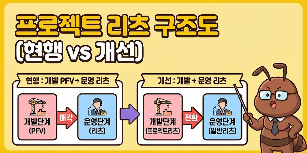 국토교통부의 스탠스는 매우 명확하고 공격적입니다. **"부채(빚) 중심의 PF 개발에서 자본(Equity) 중심의 리츠 개발로 시장 체질을 뜯어고치겠다"**는 것입니다.