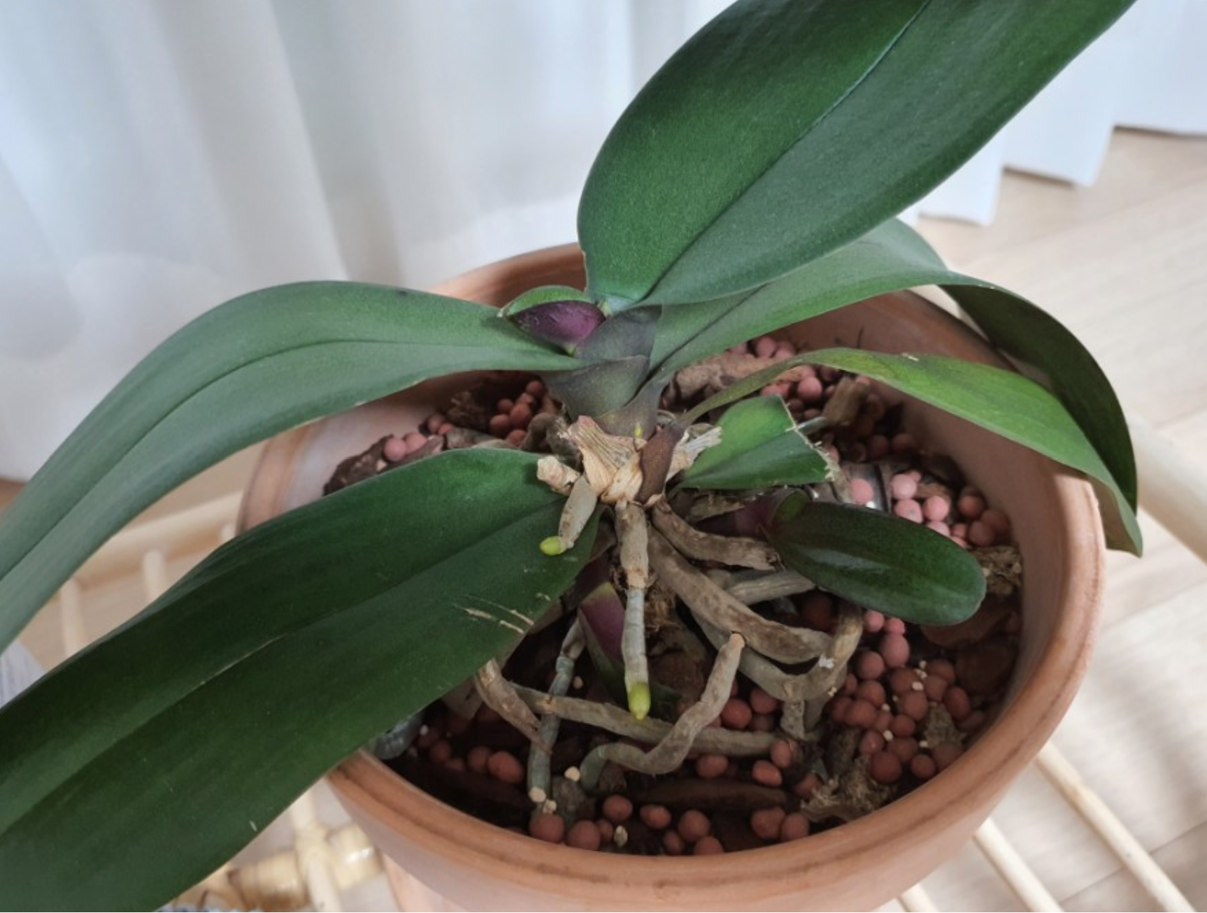 밑둥이 많이 올라온 것으로 보아 새잎이 수없이 날 동안 오래 살아왔고, 옆으로는 새끼 촉이 올라와 분촉도 가능한 건강한 호접란입니다.