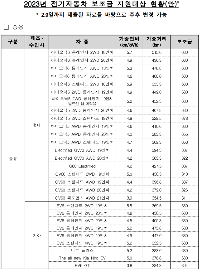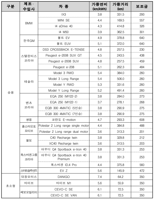 ※ 물론 보조금 / 인센티브 지급 조건 (충전기반 확충 노력 및 보금정책 목표)에 따라 만족하지 않은 차량 (아마 해외 전기차)