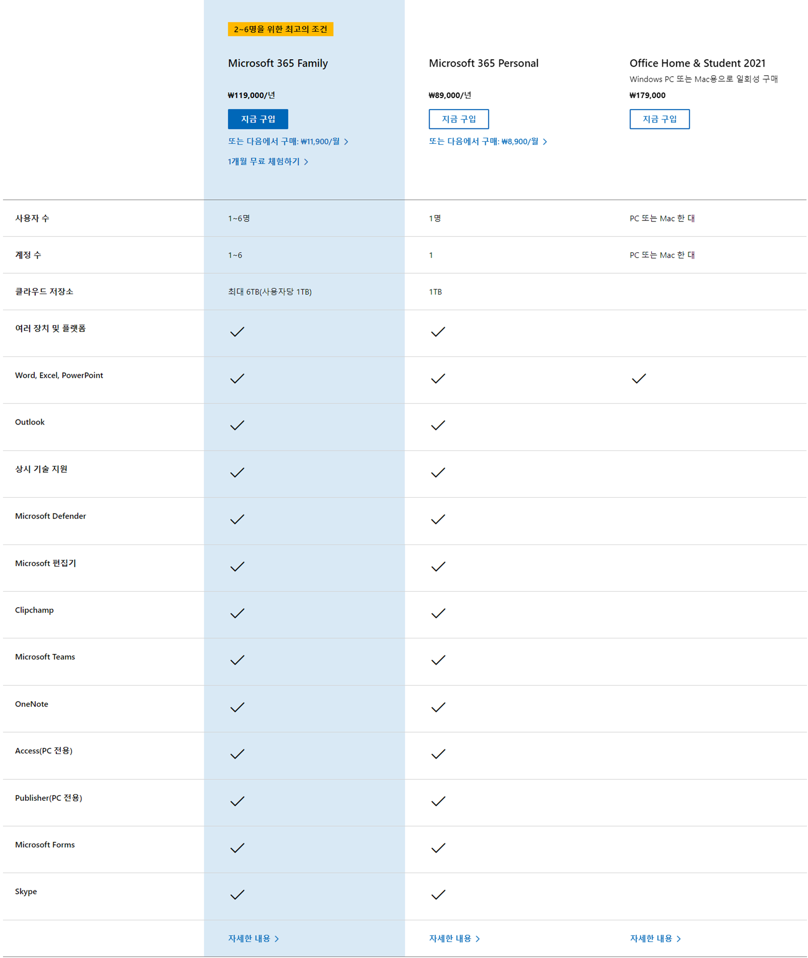 3. 가정용 마이크로 소프트 오피스 상세 비교